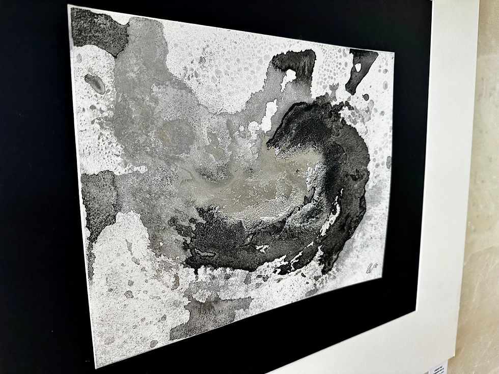 Dimensions of artwork: 30 x 24cmDimensions of passepartout: 64 x 56cm Medium: Mixed media, satin varnish, on pressed paperMounting and black frame included Price: €290